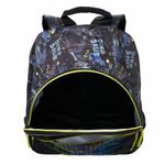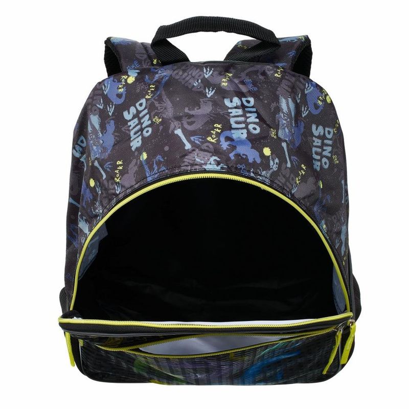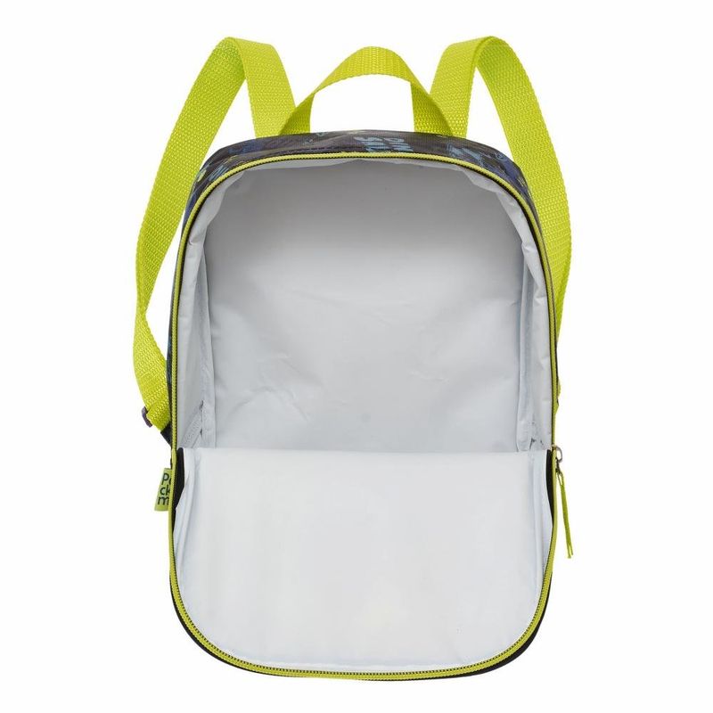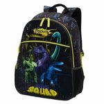 Design Combinando: Estampa Dino Squad com as mesmas cores da mochila para um visual harmonioso.