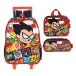 O Kit Mochila de Rodinha e Alça Jovens Titans + Lancheira Térmica + Estojo Duplo é a escolha perfeita para crianças que desejam carregar a força e a diversão dos Jovens Titans em todos os momentos, com organização e muito estilo!