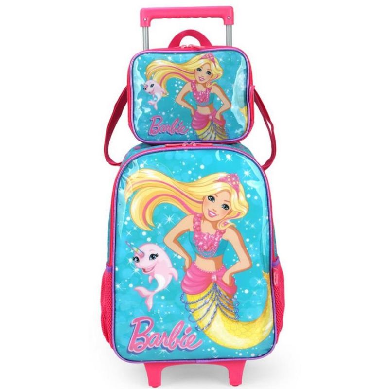 Kit Mochila De Rodinha Barbie Sereia +Lancheira