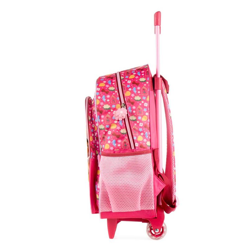 O Kit Princesas Disney traz praticidade e charme para a rotina escolar com mochila de rodinhas e estojo combinando. A mochila oferece ótimo espaço interno, bolso frontal, bolsos laterais para garrafinha, alça retrátil e rodinhas resistentes, além de detalhes encantadores como puxador em formato de coração e estampa vibrante das princesas. O estojo completa o kit com abertura prática e espaço ideal para lápis e acessórios. Um conjunto leve, resistente e perfeito para quem ama as Princesas Disney.