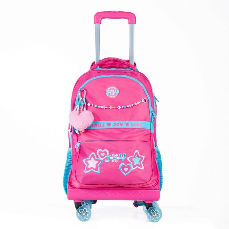 Kit Mochila de Rodinha Feminina + Lancheira Térmica Juvenil BG Joy Rosa