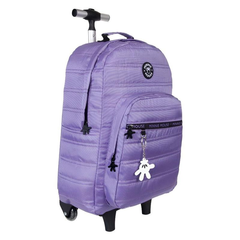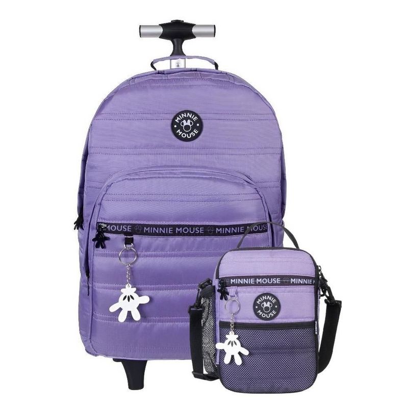 A Kit Mochila De Rodinha Minnie Teen T01 Lilas +Lancheira da Xeryus combina praticidade e estilo com o toque especial da Minnie. Com detalhes personalizados e material resistente, é ideal para o dia a dia escolar, facilitando o transporte dos materiais e proporcionando um visual encantador.