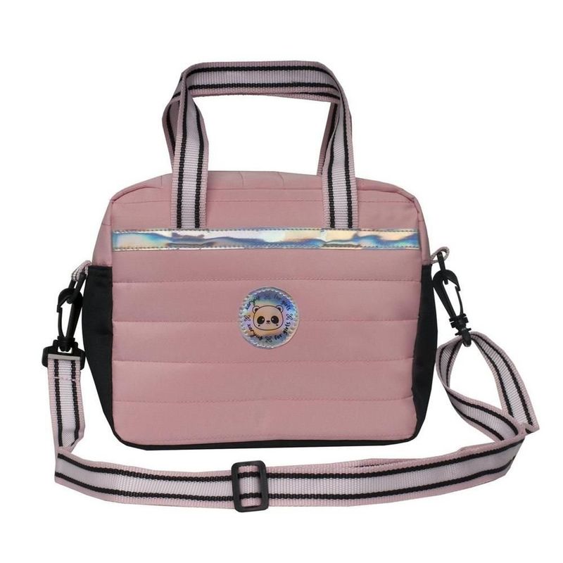 A Lancheira Tween Panda é a escolha perfeita para quem busca uma bolsa espaçosa. Com um design Moderno, cheia de detalhes fofos exclusivos e PVC com efeito holográfico e matelassê.