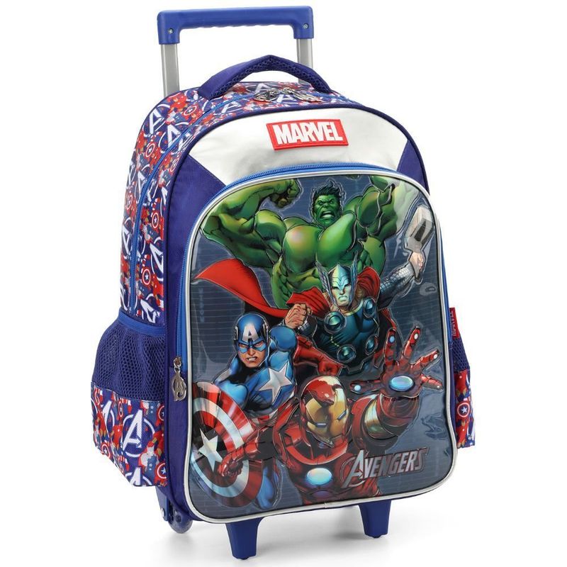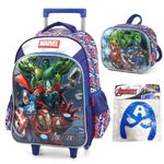 Este Kit Mochila de Rodinha Vingadores Az + Lancheira + Máscara é a escolha ideal para crianças que buscam um conjunto completo que une a paixão pelos Vingadores com a praticidade e estilo em suas atividades diárias.