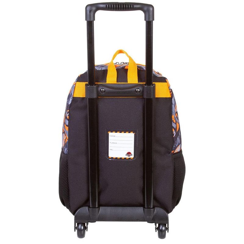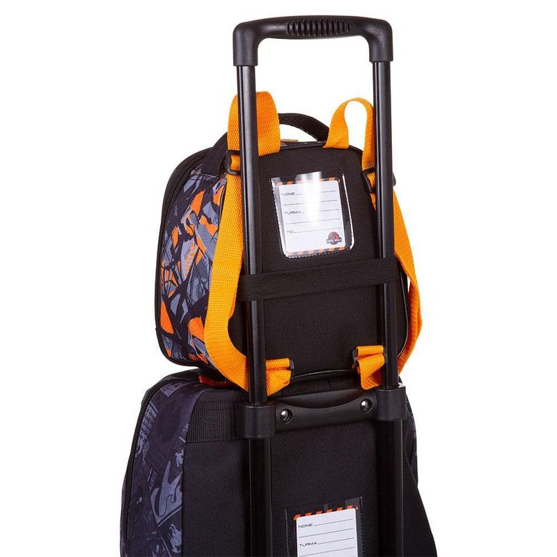 Alerta de dinossauro na área! O T-Rex está entre nós na nova coleção da Sestini: Jurassic World. A mochilete tem carrinho com 2 rodinhas e pés de apoio, um amplo compartimento central e um bolso com um desenho incrível em 3D do maior predador da terra! Nas laterais, são dois bolsos com redinha, ideal para garrafas. Nas costas, uma etiqueta com proteção plástica é para identificar o nome do explorador dono dessa mochila! CARACTERÍSTICAS Mochila: Alça: De Mão