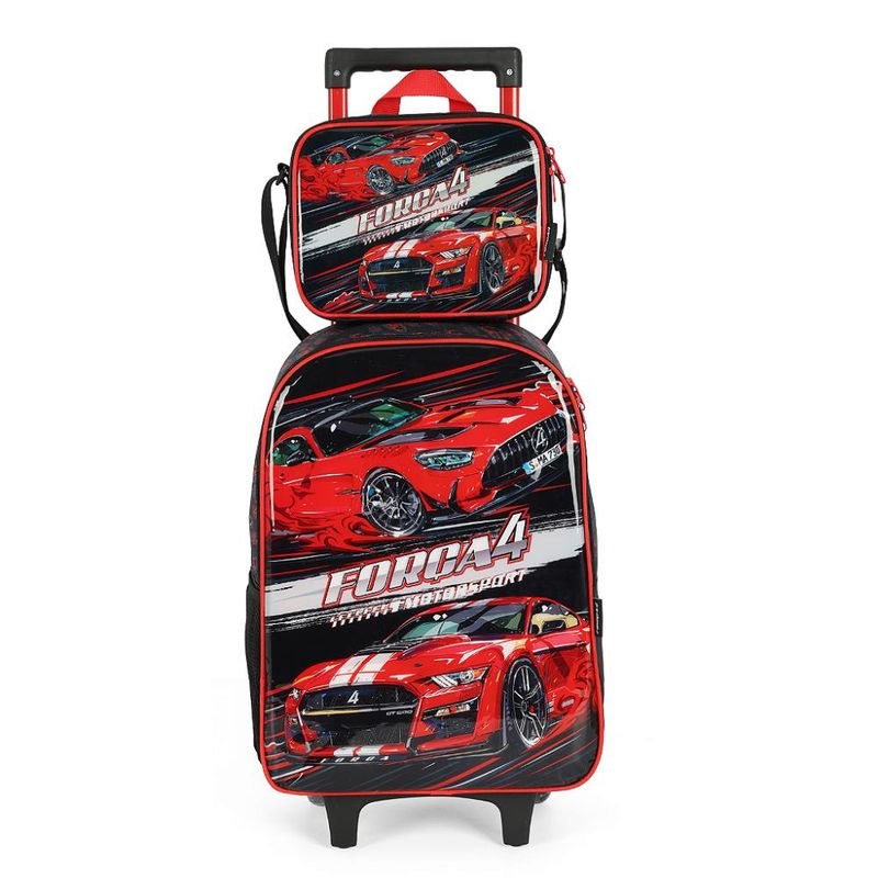 KIT MOCHILA DE RODINHAS E LANCHEIRA LUXCEL Kit mochila de rodinhas com bolsos laterias em tela com elástico,sem alça de costas, silk frontal, alça de mão. Lancheira estampada com alça de costas e alça de mão, além de etiquetas personalizadas. Características Principais: Dimensões aproximadas: Mochila 41 x 30 x 14cm (AxLxP) / Lancheira: 22 x 17 x 8cm (LxAxP). Volume aproximado: Mochila 17,5 Litros / Lancheira: 3,2 Litros. Garantia contra defeito de fabricação.