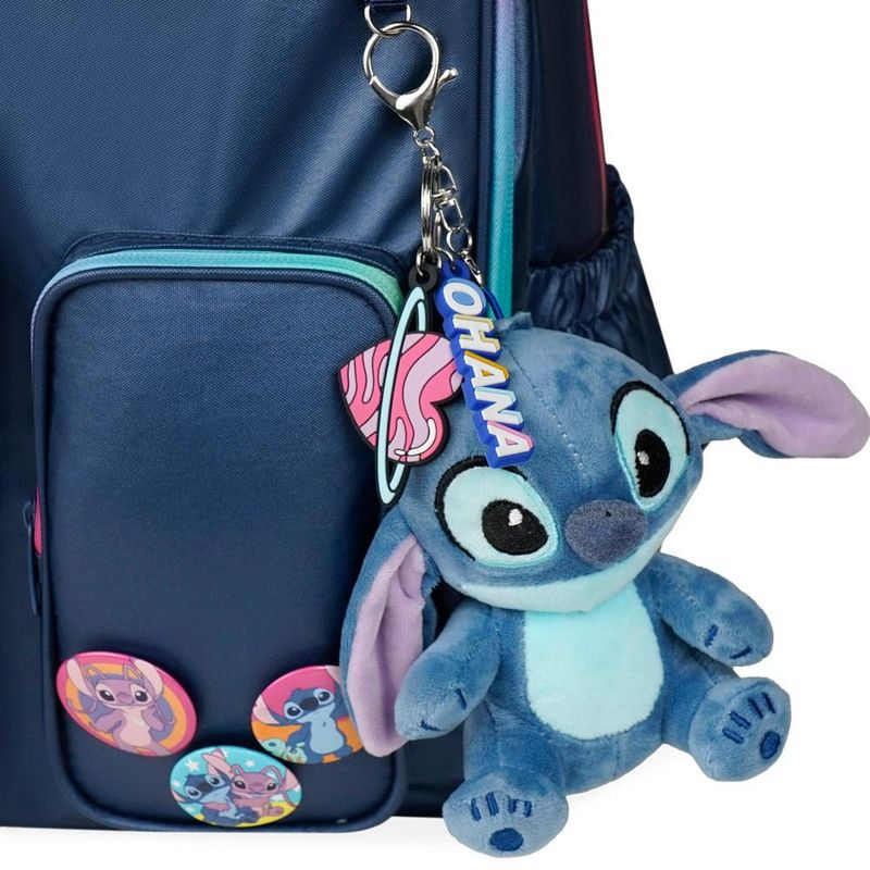 Prepare se para a volta às aulas com estilo e muita fofura com este Kit Escolar Completo do Stitch. O conjunto é protagonizado por uma mochila espaçosa em azul marinho com detalhes em rosa e arco-íris, que inclui um adorável chaveiro de pelúcia do Stitch no zíper e um boton exclusivo. Para manter o lanche fresco, o kit conta com uma lancheira térmica combinando, também decorada com um boton temáticoEste é o kit de material escolar perfeito para fãs que querem levar a magia da Disney para todos os lugares!