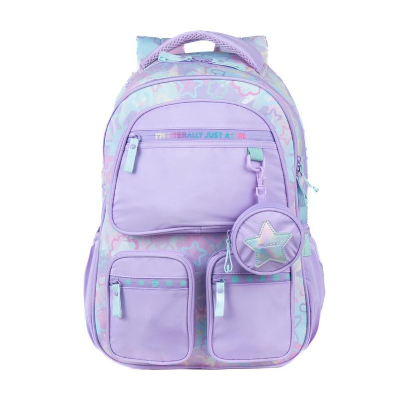 O Kit Mochila Escolar Feminina com Estojo Box Star Candy Lilás é ideal para quem busca praticidade, conforto e um visual delicado na rotina escolar. Com design juvenil e moderno, o kit une funcionalidade e estilo para o dia a dia.A mochila escolar oferece ótimo espaço interno para livros, cadernos e materiais, além de alças acolchoadas e ajustáveis, proporcionando mais conforto durante o uso. O estojo box juvenil é espaçoso e prático, ideal para organizar lápis, canetas e acessórios escolares.