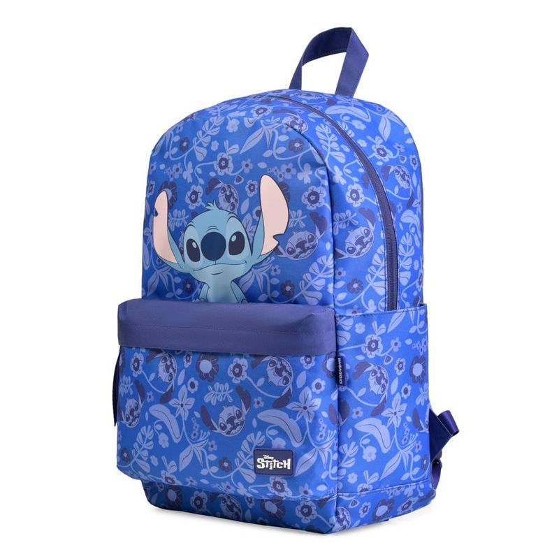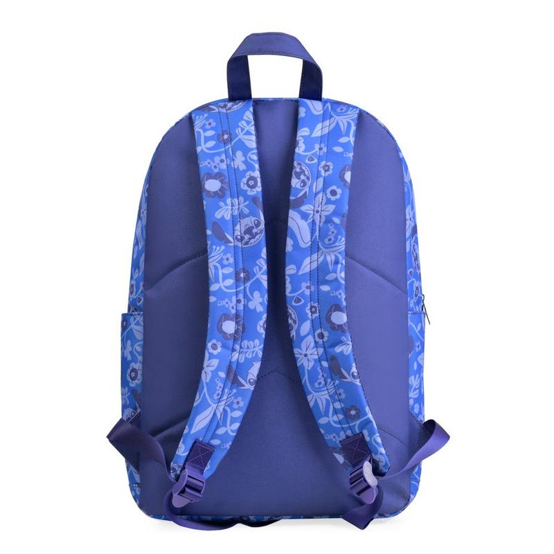 O Kit Mochila Escolar Feminina + Necessaire Stitch Bloom Azul Escuro é a coleção perfeita para quem ama disney, apresentando um design vibrante em tons de azul e roxo com uma estampa floral super charmosa, combinando a fofura do personagem com um toque tropical e moderno!