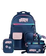 Prepare-se para a volta às aulas com estilo e muita fofura com este Kit Escolar Completo do Stitch. O conjunto é protagonizado por uma mochila espaçosa em azul marinho com detalhes em rosa e arco-íris, que inclui um adorável chaveiro de pelúcia do Stitch no zíper e um boton exclusivo. Para manter o lanche fresco, o kit conta com uma lancheira térmica combinando, também decorada com um boton temático. E para organizar lápis e canetas, o estojo escolar segue o mesmo design encantador, completo com dois botons do Stitch. Este é o kit de material escolar perfeito para fãs que querem levar a magia da Disney para todos os lugares!