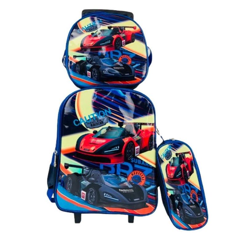 Kit Mochila Infantil Meninos Com Rodinhas Carros Escolar Estojo Lancheira Térmica Bolsa Carrinho Impermeavel Completa
