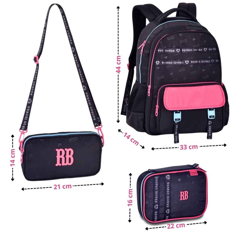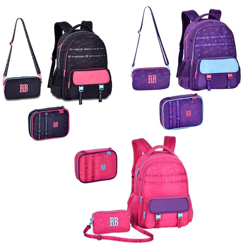 Kit Original Rebecca Bonbon. Disponível nas cores preto, rosa e roxa. Acompanha bolsinha. Zíperes estilizados da marca. Alças e costas acolchoadas. 2 bolsos grandes, bolso frontal, bolso traseiro e laterais em tela.