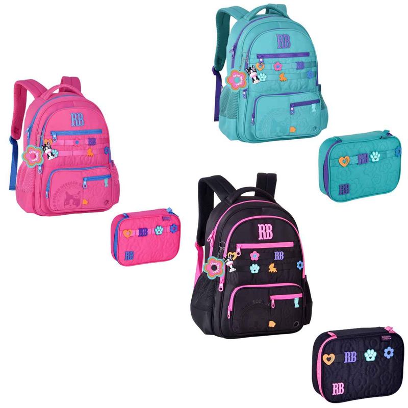 O Kit Rebecca Bonbon Flower Power 2026 une estilo e segurança com sua mochila soft de relevo em flores, equipada com bolso antifurto e alça carona. Acompanha estojo box com capacidade para 36 lápis, ideal para organização máxima. Disponível em preto, azul e rosa, este conjunto é perfeito para a escola ou viagens.