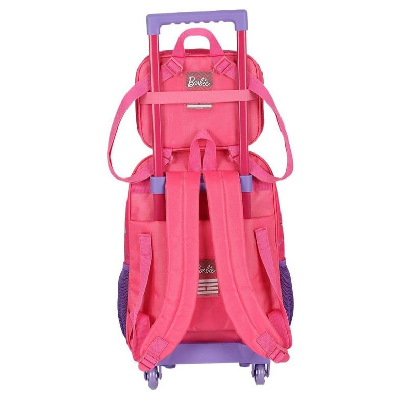 KIT MOCHILA DE RODINHAS E LANCHEIRA LUXCEL Kit mochila de rodinhas com bolsos laterias em tela com elástico, não possui alças de costas, silk frontal, alça de mão. Lancheira estampada com alça de costas e alça de mão, além de etiquetas personalizadas. Características Principais: Dimensões aproximadas: Mochila 41 x 30 x 14cm (AxLxP) / Lancheira: 22 x 17 x 8cm (LxAxP). Volume aproximado: Mochila 21 Litros / Lancheira: 4,3 Litros. Garantia contra defeito de fabricação.