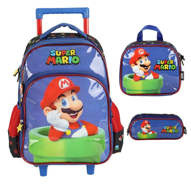 KIT MOCHILA DE RODINHAS, LANCHEIRA E ESTOJO LUXCEL Kit mochila de rodinhas com bolsos laterias em tela com elástico, sem alça de costas, silk frontal, bolso frontal com zíper, alça de mão. Lancheira estampada com alça de costas e alça de mão, além de etiquetas personalizadas. Estojo da mesma estampa. Características Principais: Dimensões aproximadas: Mochila 41 x 30 x 14cm (AxLxP) / Lancheira: 22 x 17 x 8cm / Estojo: 8 x 20 x 10cm. Garantia contra defeito de fabricação.