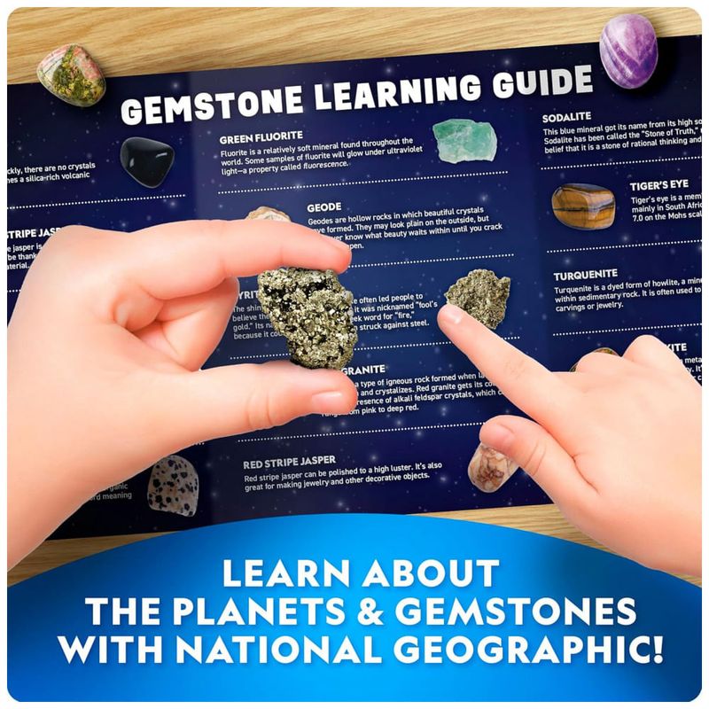 O kit inclui uma lupa para observar detalhes minuciosos de cada descoberta e um pôster educativo repleto de informações sobre os planetas e os minerais encontrados, reforçando o aprendizado STEM de maneira lúdica. Ideal para atividades individuais ou compartilhadas com amigos e familiares, o kit promove habilidades de observação, coordenação motora e conhecimento científico enquanto garante horas de entretenimento educativo. A National Geographic, reconhecida globalmente por sua excelência em educação e exploração científica, assegura a qualidade e o valor educativo deste produto.