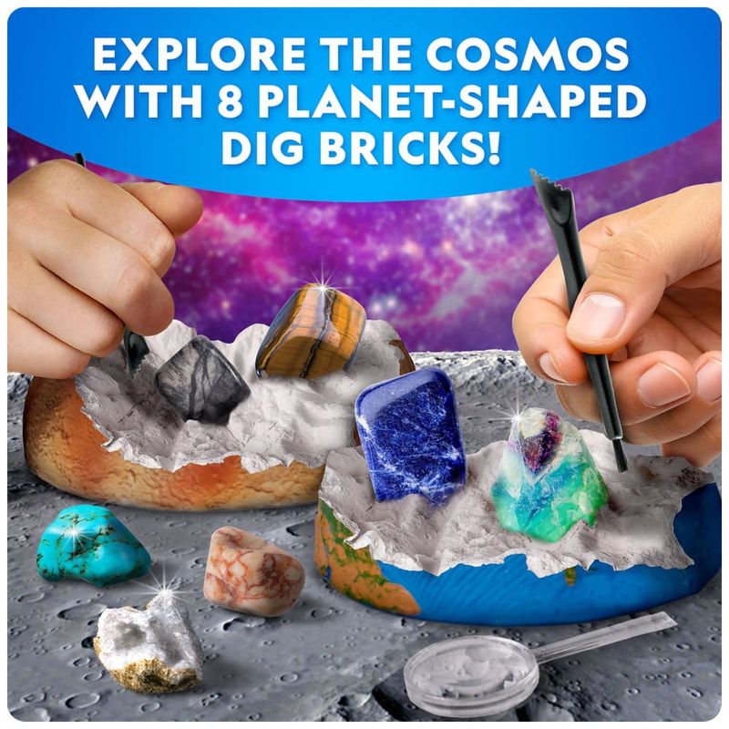 O Kit Nacional de Escavação Espacial da National Geographic oferece uma aventura científica única para crianças, combinando diversão, educação e exploração prática. Composto por oito planetas em formato de bloco, cada um contendo duas amostras reais de pedras ou gemas, totalizando 16 espécimes, este kit proporciona uma experiência de escavação emocionante e interativa. As crianças podem usar as ferramentas fornecidas para descobrir, examinar e colecionar pedras e cristais, incentivando a curiosidade sobre geologia e astronomia.