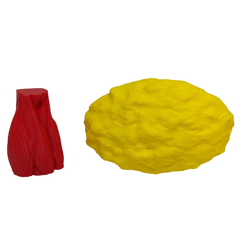 Cada peça pesa 100g, mas é projetada para representar fielmente o volume de 1kg de gordura e 1kg de músculo, o que permite uma comparação realista entre os dois tecidos.