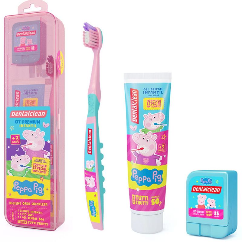 KIT PEPPA PIG - ESCOVA + FIO DENTAL + GEL DENTAL - DENTALCLEAN