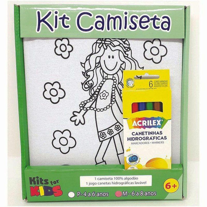 Kit Pintura em Camiseta - Menina - Tamanho M de 6 a 8 anos - Kits for KidsKit composto por 1 camisetas 100% algodão tamanho M indicado para crianças entre 6 e 8 anos, 1 jogo caneta hidrocor lavável.Material: tecido.Para transformar nossas crianças em pequenos artistas, criando uma linda "obra de arte", que elas irão vestir e se divertir!Estimula a criatividade e diversão.Medidas da embalagem: (C x A x L) 22 x 26 x 2 cm.Idade: a partir 6 anos.Prazo de garantia: 03 meses de garantia legal.Observe atentamente a idade recomendada para o brinquedo.Fotos ilustrativas as cores e modelos podem sofrer alterações sem aviso prévio.
