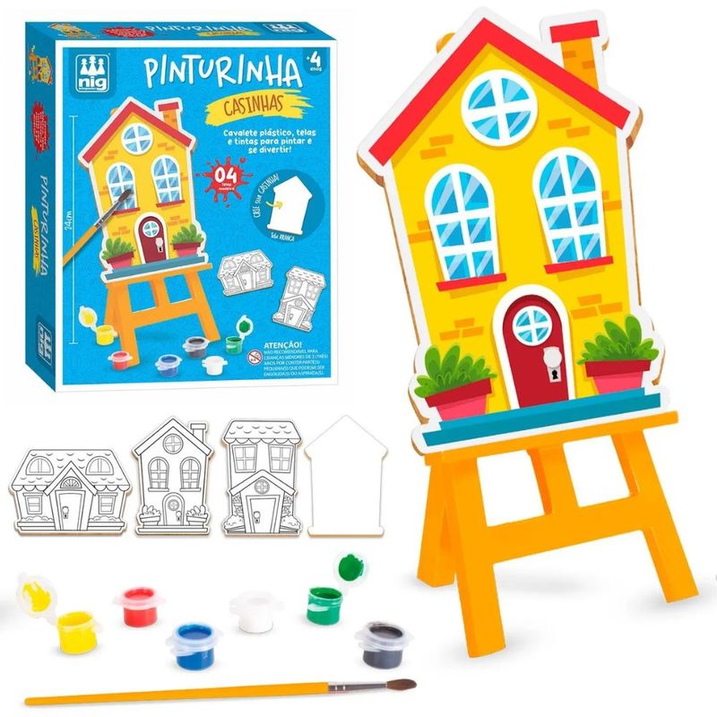 O Kit Pinturinha Casinha da Nig Brinquedos é a escolha perfeita para quem busca uma atividade criativa e educativa para crianças. Com quatro telas diferentes para colorir, todas com desenhos encantadores de casinhas, este kit estimula a imaginação, a expressão artística e a coordenação motora de forma divertida e envolvente.