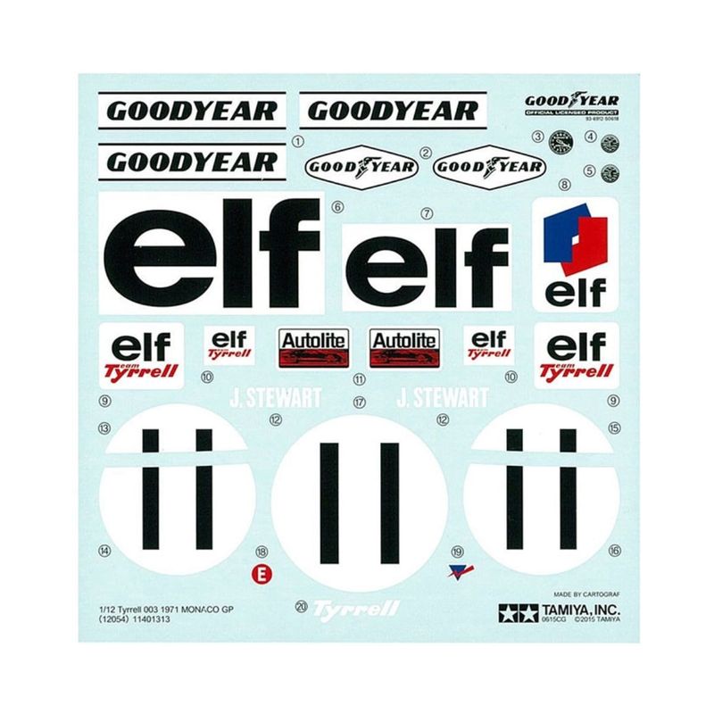 A equipe Tyrrell fez sua estreia na Fórmula 1 em 1968 usando o Matra Ford e rapidamente alcançou excelentes resultados, com um campeonato de pilotos para Jackie Stewart na temporada seguinte. A partir da 11ª corrida de 1970 no Canadá, a equipe estreou o 001 projetado internamente, que abriu caminho para os carros 003 e 002 pilotados em 1971 por Stewart e François Cevert, respectivamente. Enquanto uma asa dianteira integrada exclusiva e nariz com radiador logo abaixo chamavam a atenção, o 003 utilizava uma configuração confiável e ortodoxa. Stewart alcançou 6 vitórias em 11 corridas, incluindo o GP de Mônaco, mais do que o suficiente para os títulos de pilotos e construtores daquela temporada. Agora, o carro está imortalizado na escala Tamiya 1/12.