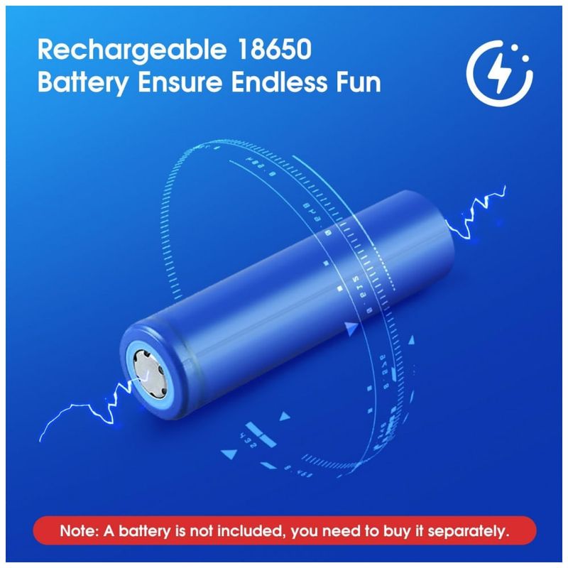Alimentação: 1 bateria recarregável 18650 (não incluída), recarga via USB-C