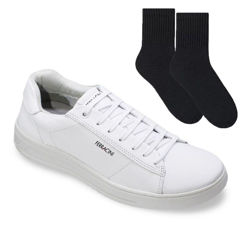 O Kit Sapatênis Ferracini Quest + Meia é um kit masculino projetado para uso no dia a dia. O cabedal do sapatênis é feito de couro, o que proporciona uma aparência elegante, além de ser resistente e durável. O fechamento é realizado por cadarço, permitindo um ajuste adequado aos pés para maior conforto durante o uso. O solado é feito de borracha termoplástica, oferecendo flexibilidade e tração, tornando o sapatênis adequado para caminhadas urbanas e uso diário em diferentes tipos de superfície. Esse tipo de solado é conhecido por ser mais leve e resistente ao desgaste. A palmilha é feita de PU (poliuretano), um material macio e confortável, que proporciona amortecimento e suporte para os pés durante o uso prolongado. Em resumo, o Sapatênis Ferracini Quest é uma ótima escolha para homens que buscam um calçado versátil para o dia a dia. Com seu cabedal de couro, solado de borracha termoplástica e palmilha em PU, ele oferece uma combinação de estilo, conforto e durabilidade, tornando-o adequado para diversas ocasiões casuais e atividades urbanas. Já as meias, são confeccionadas em algodão e poliamida, ela entrega maciez e prolonga a sensação de conforto durante o uso. De cano médio, ela possui uma barra com acabamento canelado, que a mantém no lugar enquanto treina. Conta com sola atoalhada e costuras reforçadas. O tamanho da meia irá variar de acordo com o tamanho do tênis. Referência: 9752-617E.