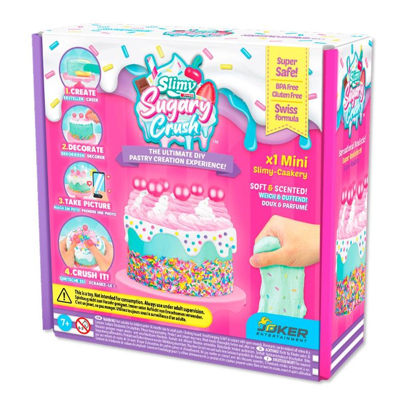 Com o Kit Slimy Sugary Crush Mini - Bolo, as crianças podem criar bolos de slime superrealistas! Misture, modele e decore com confeitos e brilhos para criar bolos incríveis. Esmague o bolo para uma sensação cremosa e divertida. Perfeito para desenvolver habilidades motoras, imaginação e criatividade, oferecendo uma experiência sensorial única e educativa.