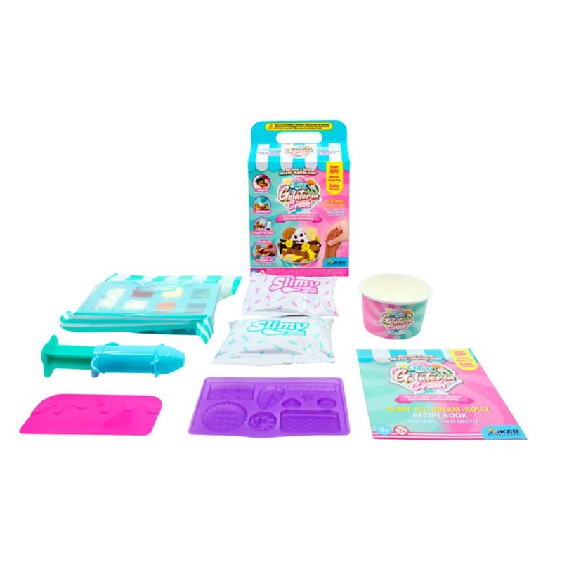 Com o Kit Slimy de Sorvete Slimy Gelateria, as crianças podem criar sorvetes de slime superrealistas em cones ou rolos! Misture e modele os ingredientes para formar sorvetes deliciosos, decorando com confeitos e brilhos. Depois, esmague para uma sensação cremosa e divertida. Ideal para estimular a criatividade e habilidades motoras, proporcionando uma experiência sensorial única e divertida.