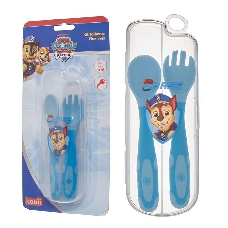 O Kit de Talheres Patrulha Canina – Chase é ideal para acompanhar o crescimento dos pequenos com segurança, praticidade e o companheirismo do cachorrinho mais corajoso da TV! Composto por garfo e colher de plástico flexível, ele é perfeito para mãos pequenas, oferecendo conforto e fácil manuseio.