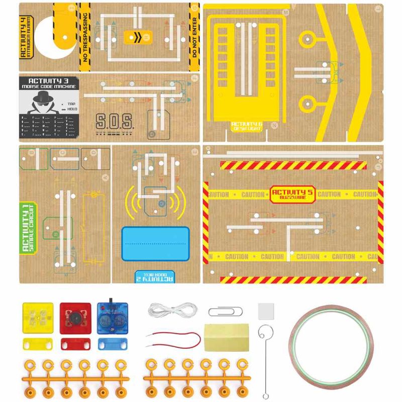 Aprenda e compreenda os fundamentos de um circuito elétrico com este kit. Aplique conceitos elétricos básicos para dar vida a um pedaço de papel. Este sistema modular foi especialmente projetado para permitir que você experimente a ciência do circuito de papel de uma maneira fácil e divertida. Os módulos podem ser reutilizados em outros projetos. Domine o básico dos circuitos elétricos com este incrível kit. Aplique seu conhecimento para transformar o papelão em um alarme de invasão, luminária de mesa, máquina de código morse, campainha, fio elétrico buzz wire e muito mais. Com este design de clipe fácil, você pode fazer 6 projetos de papel exclusivos. Este kit de ciência de circuitos de papel da Techcraft ajuda você a dominar a criação de circuitos elétricos simples. Siga as instruções e aplique seu conhecimento para dobrar 6 modelos de papel cartão em projetos de papel.