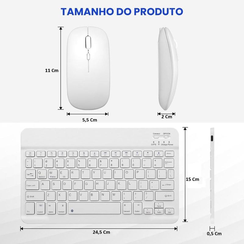 - Ampla compatibilidade: teclado e mouse compatíveis com Apple iPhone iPad Android Windows tablet smartphone Samsung e outros dispositivos móveis habilitados para Bluetooth, como Samsung Galaxy Tab/Note/S, Surface Pro, iPad 10.9/10.2/9.7 polegadas 5th 6th 7th 8th 9th 10th gen, iPad Air 10.5/10.9, iPad Pro 11/12.9 2ª 3ª 4ª geração. 5ª 6ªgeração , iPad Mini 6/5/4 etc. (Mouse Bluetooth compatível com iPad OS/iOS 13 e superior, ligue o "Toque Assistivo": Configuração> Acessibilidade> Toque> Toque Assistivo)