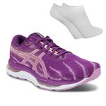 Esteja preparado para conquistar suas metas e superar seus limites com estilo e conforto incomparáveis com o tênis Asics Gel Hypersonic 5 Feminino. O modelo dispõe Cabedal confeccionado em material têxtil de alta qualidade, proporcionando flexibilidade e respirabilidade involuntária. O Solado utiliza tecnologia de borracha AHAR™ PLUS de última geração, garantindo tração superior e durabilidade excepcional em qualquer terreno. A entressola é a combinação perfeita de EVA e tecnologia GEL™ para aterrissagens suaves e transições fluidas, oferecendo amortecimento energizado e eficaz. Seu Fechamento traz sistema de cadarço para ajuste personalizado e seguro. A palmilha removível e forrada proporciona conforto extra e facilidade na estabilidade. A Lingueta macia e acolchoada, garante ajuste perfeito e sensação de conforto prolongado. o tênis Asics Gel Hypersonic 5 é Indicado para atividades físicas de alto impacto, fornecendo o suporte necessário para seus exercícios. Desenvolvido com a revolucionária tecnologia AMPLIFOAM™, aliada à icônica tecnologia GEL™ da Asics, ele oferece uma experiência de amortecimento único, proporcionando aterrissagens suaves e transições fluidas. Sinta a propulsão responsiva a cada passo, garantindo o equilíbrio ideal entre peso, durabilidade e amortecimento energizado. Já as meias, são confeccionadas em algodão, poliamida e elastano, além de gerar comodidade, elas se ajustam perfeitamente aos pés. O modelo sapatilha com barra elástica canelada proporciona segurança para não descer. Além disso, o calcanhar e as pontas, possuem costura com reforço garantindo a durabilidade. O tamanho da meia acompanha a numeração do tênis.
