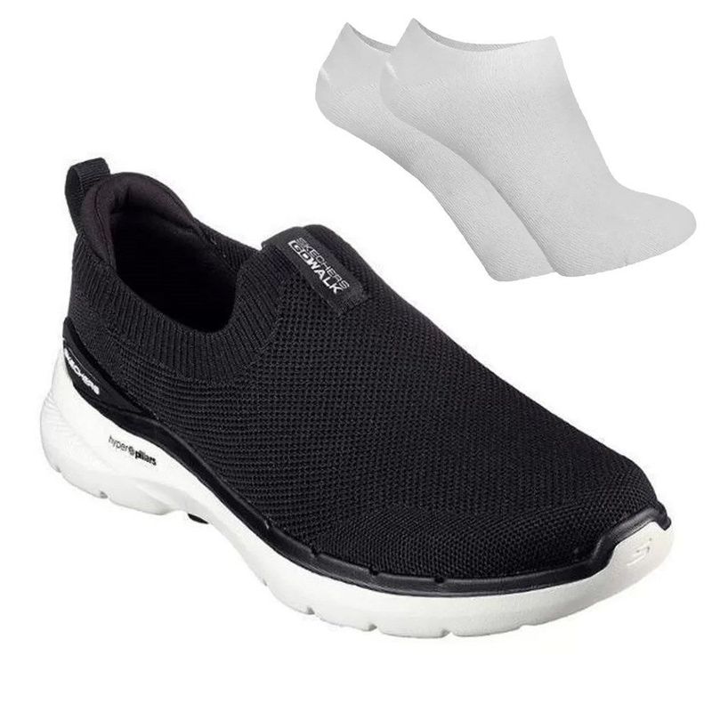Com o tênis Skechers Go Walk 6 masculino, o estilo e a qualidade estão garantidos. Com cabedal em Mesh e um design super moderno, ele entrega leveza e qualidade em suas passadas. Juntos, os sistemas Ultra GO e Hyper Pillar, fornece bem-estar, maior retorno da energia e torna seu calçado mais resistente ao desgaste. O modelo é slip-on, entregando um calce prático e fácil. O solado em EVA, garante maciez e flexibilidade. Sua Palmilha Goga Mat, foi produzida com espuma de alta densidade que conserva a memória da pisada, além do sistema ortholite que evita o mau cheiro. Indicado para atletas que possuem pisada neutra. Já as meias, por sua vez, são fabricadas a base de algodão e poliamida, garantindo maior conforto e um toque macio aos pés. Contam com reforço na região do calcanhar, garantindo maior sensação de bem estar durante todo o seu período de uso. Em cor branca e em forma sapatilha, as meias acompanham a numeração do calçado.