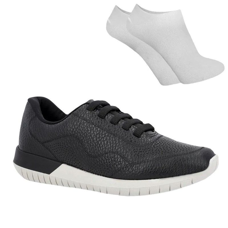 O Tênis Usaflex Relax combina estilo e conforto em um só produto, ideal para o uso casual. Seu cabedal em couro proporciona durabilidade e um visual sofisticado. A entressola se une ao solado em uma peça única de PVC, garantindo leveza e flexibilidade nos movimentos. O fechamento por elásticos oferece praticidade e um ajuste perfeito aos pés. As palmilhas anatômicas removíveis acrescentam ainda mais conforto, adaptando-se ao formato dos pés e facilitando a higienização. Com o Tênis Usaflex Relax, você desfruta de conforto absoluto e elegância em todas as ocasiões. As meias, por sua vez, são confeccionadas em algodão e poliamida, garantindo maior conforto e toque macio aos pés. Possuem reforço na região do calcanhar, garantindo maior sensação de bem-estar durante todo o período de uso. De cor branca e formato de sapato, as meias seguem a numeração do calçado.