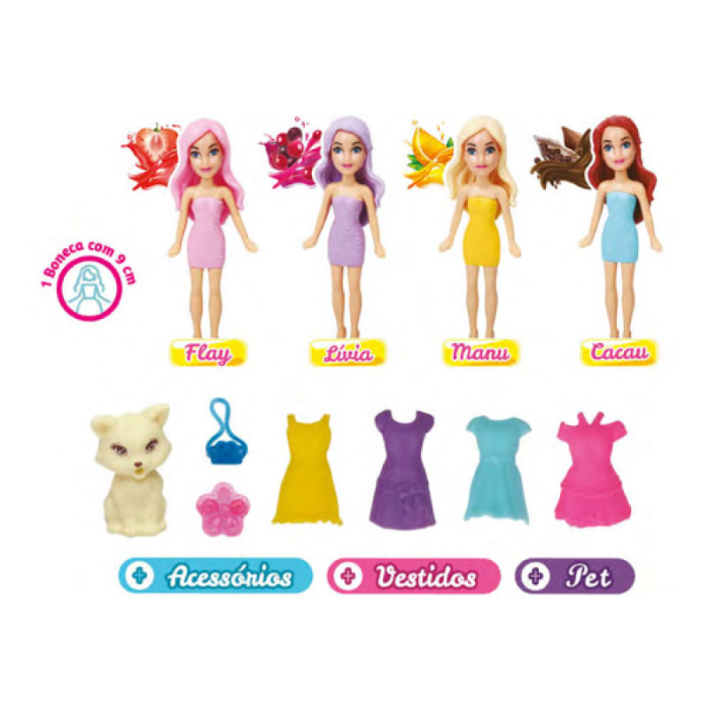 1 Boneca com 9 cm e um delicioso aroma de fruta.