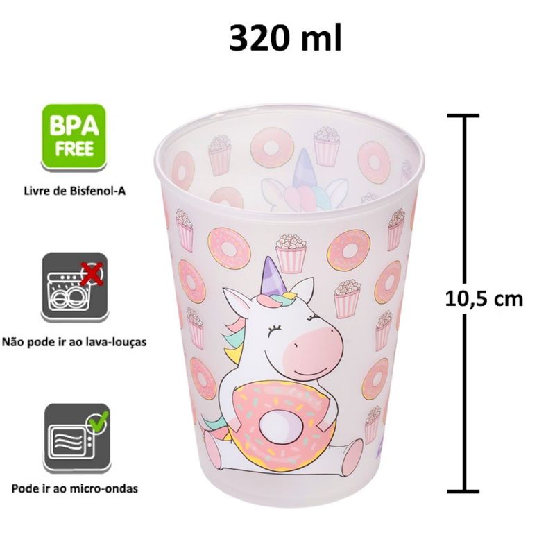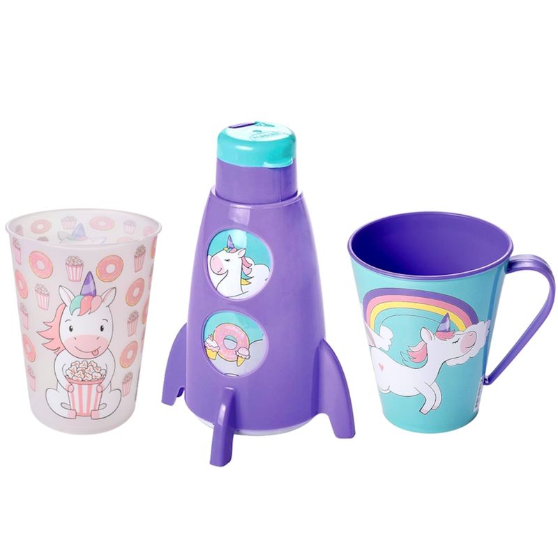 Kit Copo Caneca e Garrafinha Foguete de Unicórnio Infantil - Plasútil