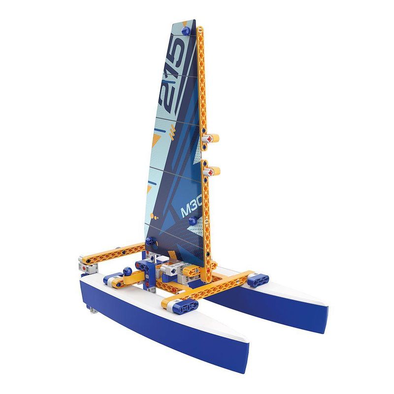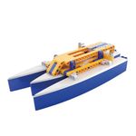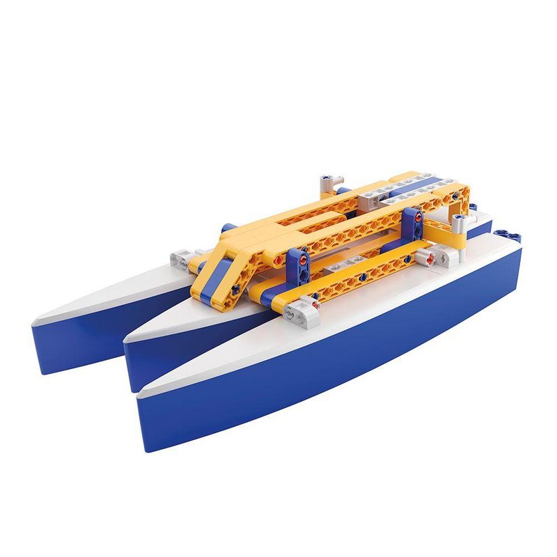 Diferenciais:Reprodução fiel de um barco catamarã com várias peças que podem ser montadas e desmontadas facilmente. Possibilidade de construir 10 modelos diferentes usando as mesmas partes.Acompanha um manual ilustrado, que traz informações teóricas sobre engenharia e mecânica.