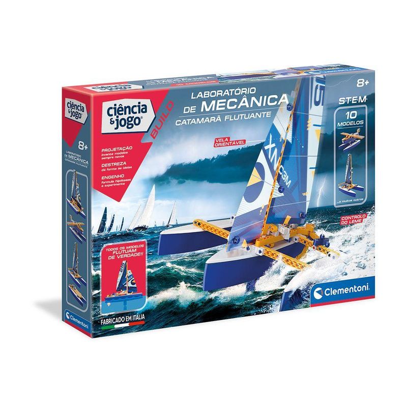 Nome do produto: Laboratório Mecânica Barco Catamarã;Idade recomendada: A partir de 8 anos;Selo Inmetro: 006731/2022;Contém: 180 peças para construir 10 modelos diferentes de embarcações e descobrir os mecanismos da engenharia naval.