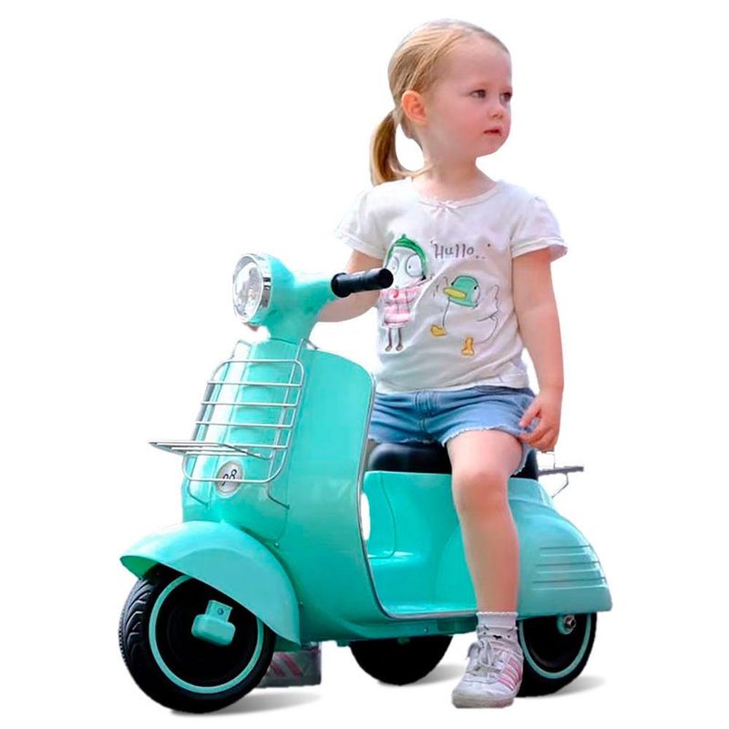 Lambreta Elétrica Turquesa 6V - Bandeirante Clássica lambreta com charmoso estilo retrô; Botão liga / desliga; Farol dianteiro e traseiro; Botão frente e ré; Módulo de som com entrada para USB e Aux (cabo MP3 não incluso); Indicador de Bateria; Bagageiro dianteiro e Traseiro; Dispositivo de proteção do sistema elétrico; Movida por bateria recarregável de 6V acompanha carregador automático 127/220V; Idade Sugerida: + 24 Meses; Peso suportado: 25 Kg. Selo INMETRO: 006678/2022 OCP: 0061.