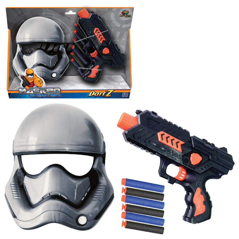 - Contém: 1 Lançador, 1 Máscara, 6 Dardos