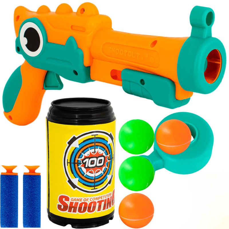 Conteúdo da Embalagem: 01 lançador, 01 óculos, 02 latinhas para acertar, 06 bolinhas, 03 dardos, 03 patinhos