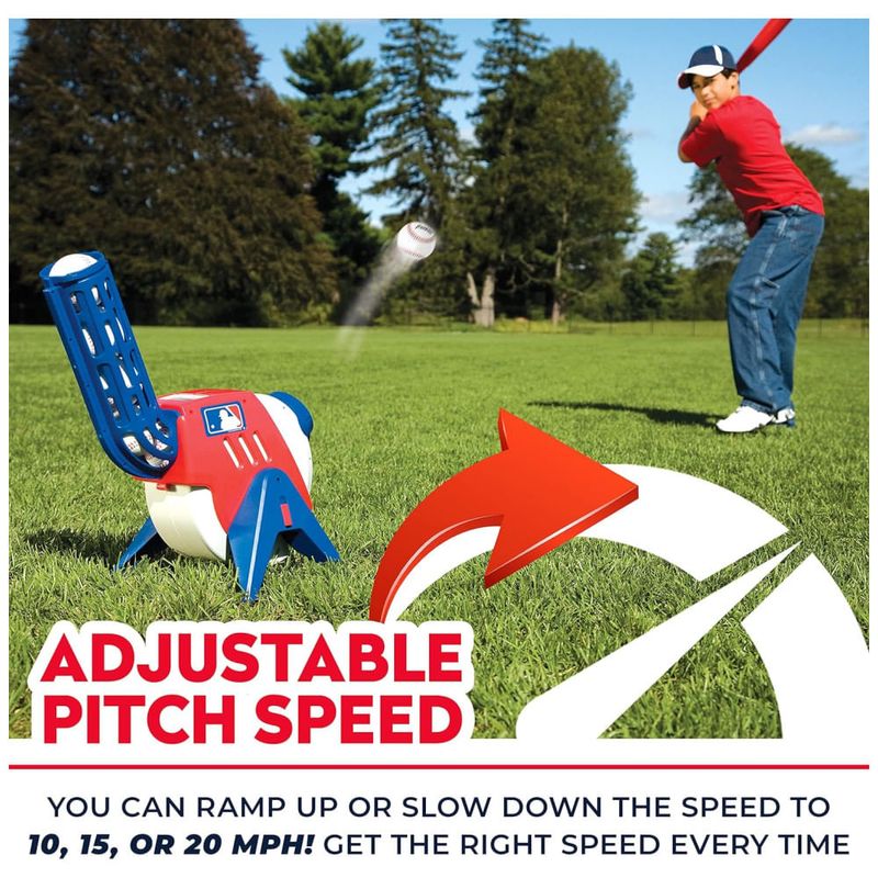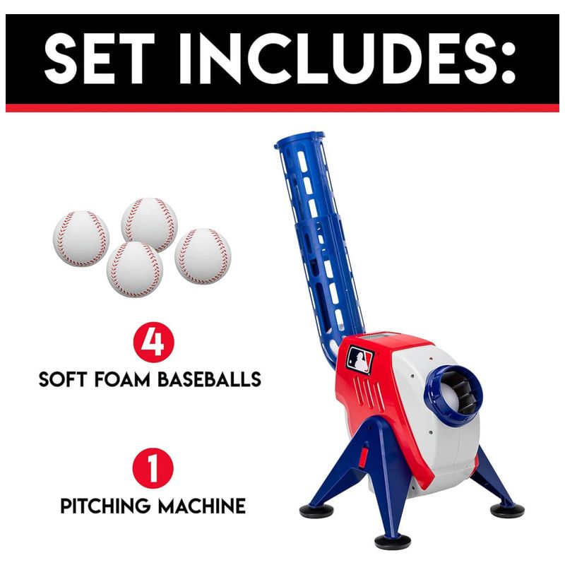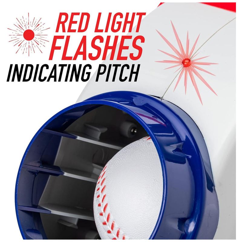 Aprimore suas habilidades de beisebol com esta máquina de arremesso infantil. Com capacidade para carregar até 9 bolas de espuma compatíveis, a velocidade de lançamento pode ser ajustada para 16, 24, e 32 km/h e as bolas são lançadas a cada 7 segundos. A luz vermelha indica o lançamento do arremesso, permitindo que as crianças estejam prontas para a bola chegar a cada vez.