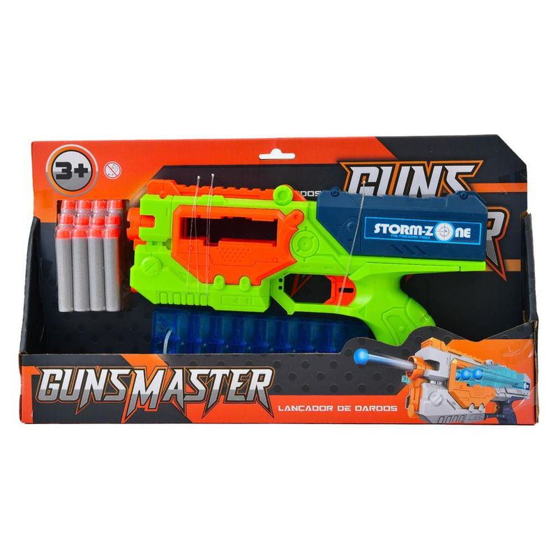 Lançador de Dardos Guns Master 12 Dardos Verde - Brinkzania Embarque nessa aventura cheia de ação! Com o lançador Strike você tem um mundo de possibilidades e brincadeiras para explorar junto à seus amigos e familiares. Selo Inmetro: CE-BRI/INNAC-02478-04A