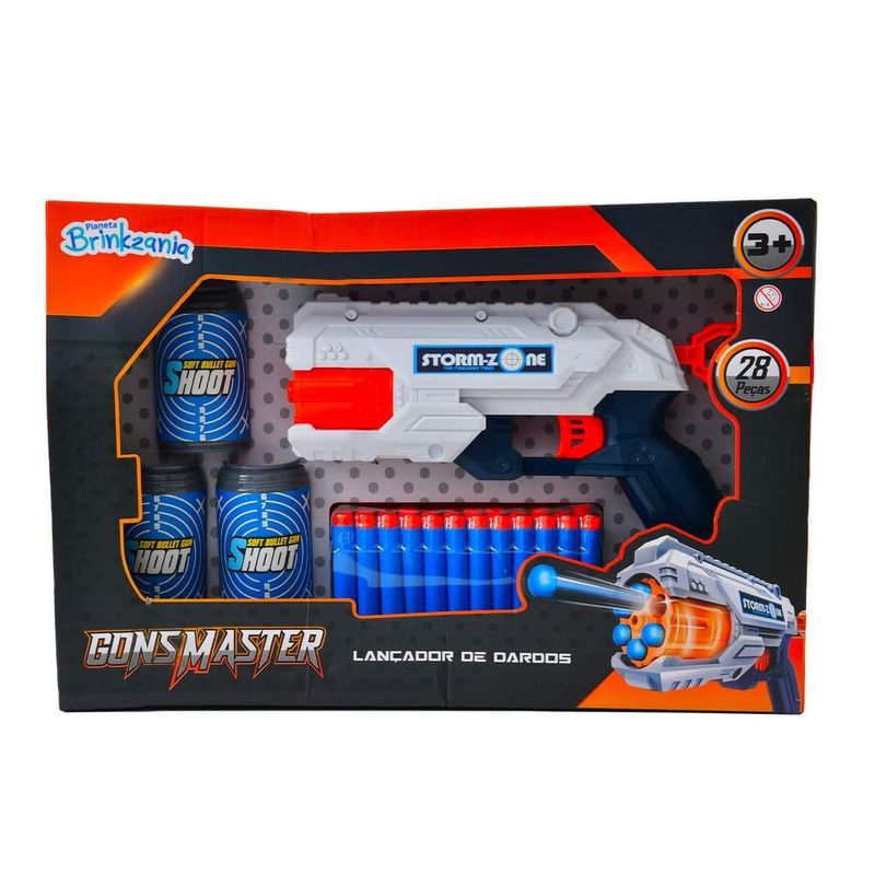 Lançador de Dardos Guns Master 24 Dardos Branco - Brinkzania Embarque nessa aventura cheia de ação! Com o lançador Strike você tem um mundo de possibilidades e brincadeiras para explorar junto à seus amigos e familiares. Selo Inmetro: CE-BRI/INNAC-02478-04A
