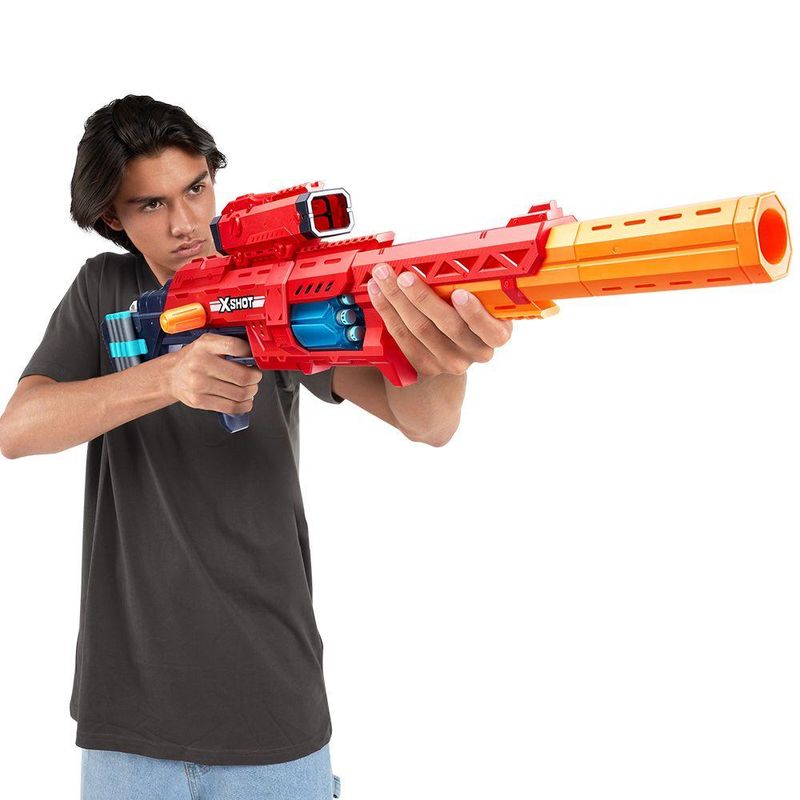 Ficha Técnica:Marca: Candide;Nome do produto: Lançador de Dardos X-Shot Ranger;Idade recomendada: A partir de 8 anos;Selo Inmetro: 005070/2022;Contém: 1 lançador com 24 dardos.