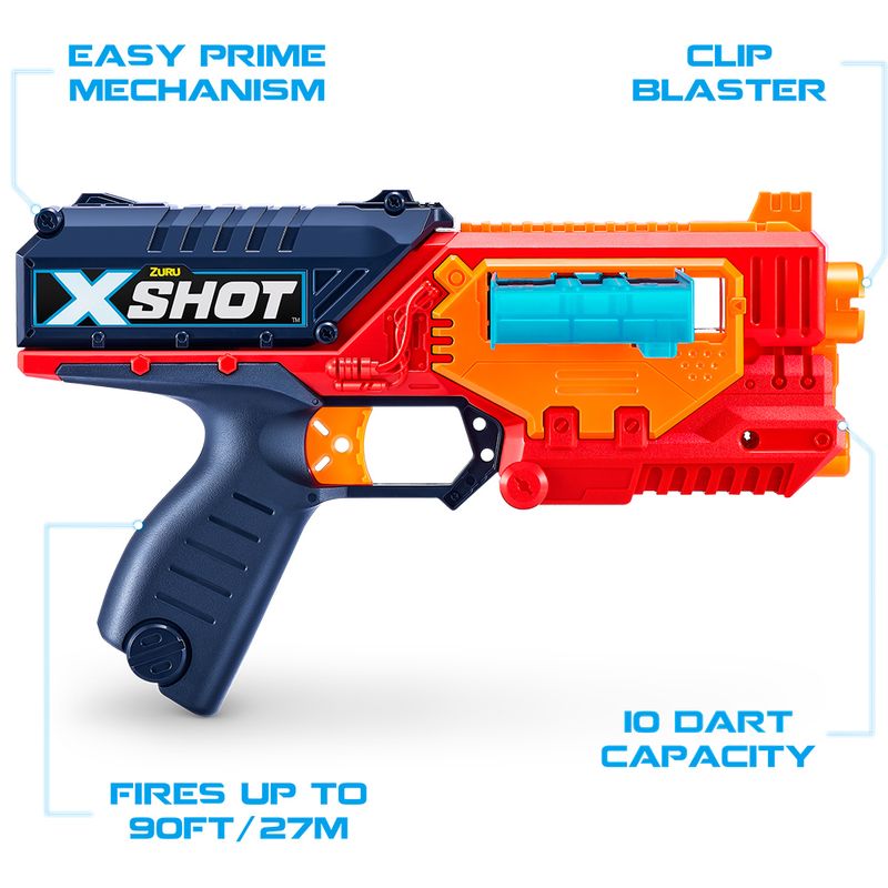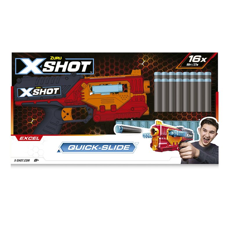Lançador de dardos de espuma composto por 1 lançador Quick Slide 16 dardos de espuma e um suporte de lançamento rápido. O Lançador de Dardos - X-Shot Quick Slide permite que você atire 16 dardos. Acerte alvos em até 20 metros com total precisão. Com estes dardos de espuma, a brincadeira vai ficar muito mais divertida e segura. É só juntar os amigos e usar a imaginação. Crie competições, brinque em casa ou ao ar livre e divirta-se de montão. BENEFÍCIOS - Contribui para a coordenação motora - Ajuda a desenvolver a concentração - desenvolve a noção espacial.