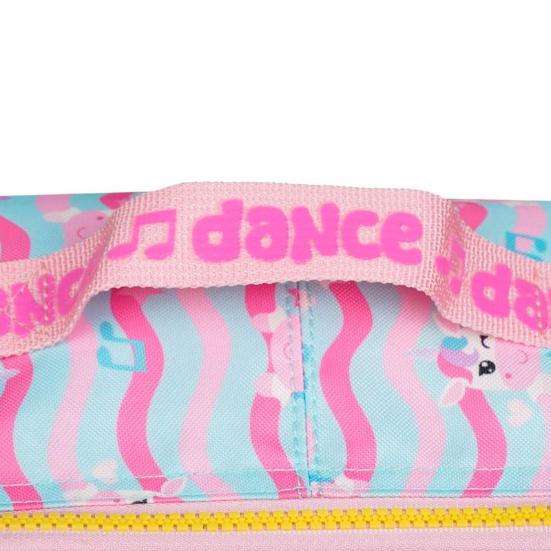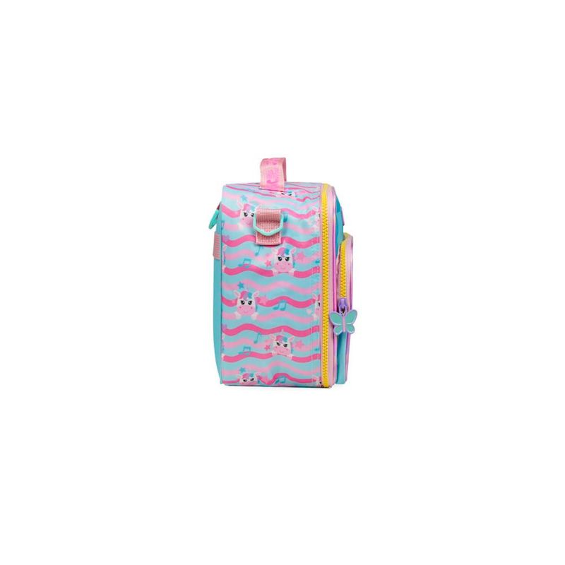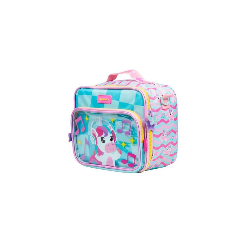 A Lancheira Escolar Feminina Térmica Unicórnio Just Dance é a escolha certeira para acompanhar a rotina das crianças com mais autonomia, diversão e tudo o que elas precisam para levar as refeições bem armazenadas. O destaque fica por conta do bolso frontal em PVC transparente com ilustração aplicada do unicórnio, que dá aquele efeito 3D encantador que vira sucesso imediato entre as pequenas fãs de cores, brilho e personagens.Organização e Espaço InternoA proposta da lancheira é simples: deixar o dia a dia mais prático. O interior totalmente térmico mantém alimentos frescos por mais tempo, ideal para quem leva lanche completo para a escola, clube ou passeios. O bolso frontal em PVC ajuda a separar itens menores (talheres, guardanapos, bilhetinhos), e o formato quadrado garante um espaço interno bem aproveitado, cabendo potes de vários tamanhos. Para completar, a lancheira conta com alça transversal ajustável e alça de mão para facilitar o transporte no ritmo da criança.Praticidade para Escola e PasseiosPensada para acompanhar mochilas e estojos da mesma linha, essa lancheira oferece detalhes que fazem diferença na rotina: alça carona, permitindo acoplar a lancheira em mochilas com rodinhas, e estrutura firme para apoiar na mesa sem tombar. A criança carrega com conforto, os responsáveis ganham praticidade e tudo fica protegido.Durabilidade e Detalhes ExclusivosProduzida em material resistente, com acabamento reforçado e estampa personalizada da coleção Just Dance, a lancheira combina durabilidade com um visual que realmente se destaca. O painel frontal com brilho discreto e o desenho aplicado garantem aquele efeito especial que diferencia a coleção dentro do mix Bagaggio.Por que escolher esta lancheira?O diferencial está na ** combinação de função térmica + personagem + painel transparente aplicado**, que deixa tudo mais lúdico sem abrir mão da performance. A promessa do produto é clara: uma lancheira térmica resistente, fácil de carregar e com visual que encanta, acompanhando a criança em qualquer rotina.FAQA lancheira mantém a temperatura mesmo em dias quentes?