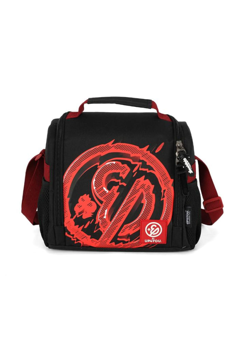 A Lancheira Escolar Enaldinho By Up4you combina personalidade e praticidade para o dia a dia das crianças. Fabricada em poliéster resistente, apresenta design exclusivo do Enaldinho, com estampa marcante em preto e vermelho que destaca o estilo do influenciador. Compacta e funcional, possui dimensões de 23x20x15 cm, sendo classificada como pequena e ideal para a rotina escolar. Sua capacidade interna garante espaço suficiente para refeições, snacks e garrafinhas de forma organizada.Conta com compartimento térmico, mantendo os alimentos frescos por mais tempo, além de bolso lateral, zíper personalizado e alça superior para transporte rápido. Acompanha também alça transversal ajustável, oferecendo conforto e praticidade para carregar no ombro.Dicas de uso: ideal para levar lanches para a escola, passeios curtos, atividades esportivas ou viagens rápidas. Mantenha sempre recipientes bem fechados para evitar vazamentos.Dicas de limpeza: limpar com pano úmido e sabão neutro; não usar alvejante; deixar secar à sombra; evitar lavar na máquina para preservar o isolamento térmico.